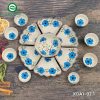 Bộ bát đĩa hoa mặt trời Hoa Mai Xanh cánh lượn được làm từ chất liệu gốm sứ cao cấp Bát Tràng, xương gốm bền chắc, họa tiết hoa Mai vẽ thủ công nổi bật với sắc xanh trên nền men trắng ngà.